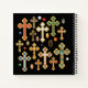 Ajoutez une touche de bling chrétien à votre bureau avec ce carnet élégant avec son design de croix d'or éclatées de fausse pierre de naissance colorée et de perles amples et démontées sur un arrière - plan noir. + WYSIWYG + NOTE : Tous les éléments de cet élément sont plats, 2 dimensions et IMPRIMÉS ! Aucun gemme ou métal n'est utilisé dans sa production. + Crédits image : Les pierres précieuses ont été extraites de deux séries de cartes postales antiques : 1) la série Lucky Horseshoe Birthstone, initialement publiée par Adelbert Kohn, Philadelphie, Pennsylvanie, 1907; et 2) la série Gem Birthday ("star"), initialement publiée par l'Art Manufacturing Company, Amelia, Ohio, 1908 1915. Les deux séries de cartes postales proviennent de la collection privée du concepteur. + Les perles sont clipart licencié du pack Shiny Pearl 2 par Lary Cao.