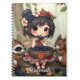 Un cahier personnalisé de conte de fées sucré pour un enfant. Une petite fée chibi de dessin animé mignon mangeant des mûres avec ses amis de la forêt, un raton laveur et un écureuil.