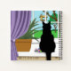 Chat noir assis sur le plan de la fenêtre regardant par la fenêtre les oiseaux dans la mangeoire. HD t.v. pour chats