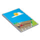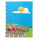 Carnet d'enfant avec des graphismes aux couleurs vives d'un fermier dans son tracteur qui s'occupe de sa ferme par une journée ensoleillée. Personnalisé avec le nom de votre enfant dans le champ fraîchement labouré.