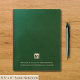 Prenez des notes et notez des idées dans notre Carnet financier en cuir vert. L'emblème initial du monogramme d'or brossé, combiné avec les coordonnées de votre entreprise et les coordonnées dans la typographie classique d'or, fait de ce carnet un compagnon élégant pour les planificateurs financiers, les gestionnaires de patrimoine et les conseillers lors des réunions de clients et des séances de remue-méninges.