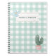 Fleur d'aquarelle et cactus dans un vase rose sur un arrière - plan plaid bleu clair et blanc