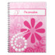 Personnalisez en ajoutant votre nom à ce Carnet Spiral rose girly mignon avec une image de fleurs rétro rose vif et des cordes tourbillonnantes de perles. Un joli petit dessin de papillon est placé à côté de la zone de nom personnalisable. Parfait pour une adolescente qui aime les accessoires pour être joli en rose, ou un grand cadeau de retour à l'école.