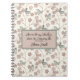 Carnet Fleurs roses mignonnes et oiseaux verts illustrés
