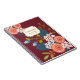 Une belle illustration orne ce jardin de printemps ou d'été le livre d'invité qu'orienté de mariage qui est orné avec des fleurs d'abricot et de ranunculus de corail, rougissent et dentellent des fleurs de cerisier, bourgeons floraux bleus et verdure assortie sur un arrière - plan coloré par vin de marsala. La conception orientée de jardin à la mode et contemporain est parfaite pour le ressort, l'été, ou les mariages extérieurs.