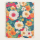 Une couverture de carnet gaie et vibrante, aux motifs floraux vivants. Le design est rempli de grandes fleurs de blanc crémeux et d'orange chaud, complétées par de petites fleurs rouges et jaunes. Un arrière - plan bleu marine ou turquoise profond offre un beau contraste, faisant éclater les couleurs chaudes des fleurs. Cette couverture est parfaite pour tous ceux qui aiment la nature et veulent ajouter une touche de couleur et d'art à leurs notes et plans quotidiens.