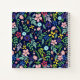 Botanique florale avec feuillage flottant, jolies fleurs stylisées, feuilles, baies, glands et pois d'accent dans les tons vert, bleu, rose, violet et jaune avec des accents d'orange, rouge et marron. Placé sur le bleu express foncé de minuit. Utilisez les modèles pour personnaliser avec votre nom ou message en police rose sur une plaque d'identification bleu foncé encadrée en rose.