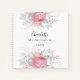 Un arrière - plan blanc chic avec des fleurs roses et du feuillage argenté. Personnalisez et ajoutez votre nom, titre et année. Le nom est écrit avec un script de style moderne écrit à la main.