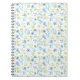 Carnet spirale avec motif de fleurs printanières brillant et joyeux, dans les tons bleu et vert.