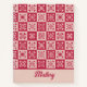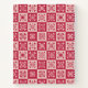 Ce carnet présente un damier rouge et rose motif de motifs de coeur d'art populaire avec un look pochoir avec un endroit pour ajouter un nom ou un autre texte en écriture script ou cursive.