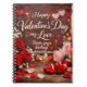 Capture love, dreams, and heartfelt thoughts in this romantic 'Forever Your Valentine' spiral notebook. The design features a dreamy bokeh-lit background, vibrant roses, delicate baby’s breath, and scattered petals across rustic wood, framed by glossy heart ornaments and the elegant message “Happy Valentine’s Day my Love.” To make it truly special, the notebook includes a customizable line—like “From your darling husband/fiancé, Brent”—that customers can personalize with their own names. Perfect as a Valentine’s Day gift, anniversary keepsake, or a daily journal, this notebook invites your loved one to write her heart’s desire while cherishing a personal gift from you.