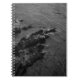 Cette photographie en noir et blanc présente un large angle d'une formation rocheuse côtière avec les vagues de la mer frappant contre elle. Cette photographie est parfaite pour tous ceux qui aiment l'esthétique de la côte californienne et qui aiment aussi la photographie paysagère.