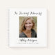 Personnalisez le carnet de connexion funéraire "In Loving Memory" avec le nom de script noir, les dates et la photo sur arrière - plan blanc. Texte supplémentaire sur le dos ou supprimer.