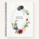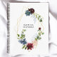 Moderne et tendance, le carnet floral présente une pièce centrale géométrique or (pas réelle) aux fleurs bordeaux, marines et roses.