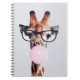 CARNET GIRAFFE PORTANT DES VERRES SOUFFRANT UN BUBBLEGUM