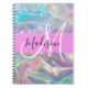 Nom monogramme irisé holographique de l'arc-en-ciel et carnet initial. Votre nom personnalisé et votre monogramme sont écrits dans un élégant script écrit à la main avec un arrière - plan rose. Un cadeau d'anniversaire ou de Noël parfait !