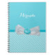 Ajoutez une touche de charme champêtre à votre style personnel avec cette aqua girly et biais blanc en vichy carnet motif avec un joli arc blanc transparent décoré de jolies perles et un ruban de rosette bleu clair. Ce design bleu clair féminin peut être personnalisé en ajoutant votre nom. Image imprimée plate, pas le ruban réel.