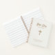 This personalized bible study notebook provides the opportunity to add notes and strengthen your knowledge along your bible study journey. Your bible study notebook will become a treasured keepsake over the years and offer a record of God’s provision and guidance. This simple elegant design features gold script calligraphy, customizable text and a matching gold cross on the front... perfect for keeping bible study notes, sermon notes, prayers and gospel lyrics. On the back is a scripture verse, which you can change if you prefer. To customize any text, and/or personalize your name, follow the "Personalize this template" link. For help or custom request, please feel free to contact me at susanmingaydesigns@gmail.com