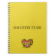 This customizable yellow notebook features a comic-style heart decorated with the name "Grace". You can customize the default text. This is a great back-to-school gift.
