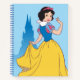 Blanche Neige regardant en arrière sur son épaule avec la silhouette du château dans l'arrière - plan.