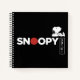 Snoopy se détend contre un rocher au-dessus de son nom en anglais et japonais.