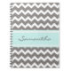 Un beau journal en spirale avec les chevrons légers élégants et modernes de bleu de turquoise, gris et blancs rétros zigzague motif de rayures. Customisez ce carnet avec votre texte nommé ou fait sur commande.
