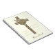 Première sainte communion ou votre événement religieux, croix élégante avec la colombe et coeur sur le livre d'invité en ivoire d'arrière - plan, carnet de notes à spirale