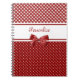 Un carnet rouge et blanc girly avec le pois rouge et blanc mignon sur le fond, guingan chic sur le dessus et embelli avec un ruban rouge attaché dans un arc. Personnalisez cet ensemble élégant en ajoutant votre nom. C'est une image imprimée d'appartement, matériel ou un ruban non réel.