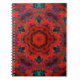Ce carnet psychédélique présente un rouge vif et turquoise dans un motif kaléidoscope.