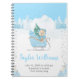 Ce carnet mignon et amusant présente un adorable ours dans un traîneau bleu entouré de neige, de montagnes et de pins. De belles compositions de fleur en faux parties scintillant et des confettis argentés apportent une touche festive. Le texte combine écriture manuscrite et polices sans serif pour un look élégant et moderne. Il peut être personnalisé avec les statistiques de naissance de votre bébé, comme le nom, la taille, la date et l'heure de naissance, ou si vous souhaitez le donner comme cadeau de douche vous pouvez modifier et supprimer du texte.
