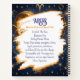 A mystical golden Ram Aries Astrology sign notebook with Aries dates and traits on the back, along with compatibility and other fun Aries facts.