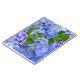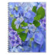 Belles fleurs d'hortensia dans les tons bleu et mauve, avec de petites papillons bleus.