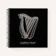 Icône de harpe noire et blanche avec décoration de noeud celtique. Texte personnalisé.