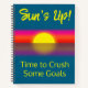 Gardez le suivi de vos objectifs avec cette fois pour écraser certains objectifs | Carnet du lever du soleil. Il présente des oeuvres d'art du lever du soleil avec l'expression "Sun's Up, Time to Crush some Buts" en jaune vif. Offrez-vous un encouragement positif.
