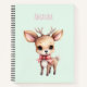 Carnet spiral avec l'illustration d'un adorable cerf de bébé. Grands yeux grands oreilles avec une grande tête et des petits bois bruns. Portant un gros arc rouge.