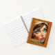 Carnet avec une amusante illustration girly rétro à l'avant et motif à pois brun orange et turquoise à l'arrière. Idéal pour les notes personnelles ou scolaires.