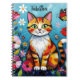 Cat themed personalized notebook. A cute orange cat sitting in flowers and surrounded by butterflies. The art is in an impasto oil paper quilling style.