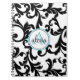 Carnet Imprimer les Damas monogrammes noir et turquoise