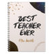Un grand professeur nous aide à atteindre les étoiles! Ce meilleur carnet d'enseignant présente des cieux étoilés et des éclaboussures de gloire qui peuvent être facilement personnalisées avec le nom de votre professeur préféré. Fait pour un excellent cadeau pour l'appréciation de l'enseignant, Noël, ou juste parce que.