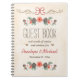 Un livre d'invité élégant et beau de mariage de cône de pin de Noël avec rétro et antique un appel formel et vintage. Les pinecones givrés, l'aquarelle et les roses et les fleurs de Noël de rose de regard, rouge et blanc peintes, le gland neigeux et les baies de houx composent une jolie guirlande de laurier d'hiver. L'or s'épanouit et un arc rouge de ruban accomplissent le regard de fête de ce carnet orienté d'hiver. © Chrissy H. Studios, LLC d'illustration. Tous droits réservés.