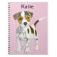 Ce charmant carnet personnalisé présente mon dessin d'un mignon chiot en terrier Jack Russell contre un arrière - plan rose. Le Jack Russell est blanc avec des taches brunes et un visage brun et blanc avec de grands yeux attrayants.
