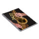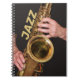 Pour les amateurs de jazz ! Un carnet à taille personnelle, en spirale, qui présente l'image d'un jazzman jouant sa corne de saxophone ténor, de couleur or usée, avec le mot "JAZZ" imprimé en lettres de blocs de couleur or. Utilisez comme journal ou pour garder des notes importantes.