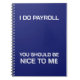 Je fais la paie. Vous devriez être gentil avec moi Ce design aide les professionnels de la paie à rester organisés et en tête de leur jeu en suivant leurs idées, stratégies et idées brillantes.