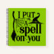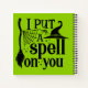 Ce design classique d'Halloween comporte l'expression éffrayante "Je mets un sort sur vous" dans une police audacieuse d'inspiration gothique. Les couleurs noir et blanc rehaussent l'atmosphère étrange, rendant le design parfait pour la saison d'Halloween. Le texte est accompagné d'éléments de sorcellerie iconiques, dont un casquette de sorcière pointu, un bâton de brosse, une toile d'araignée et une minuscule araignée, tous arrangés pour créer une composition de sorcière. Le détail subtil des points autour du texte ajoute une touche de charme magique.