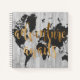 Un design mignon avec une phrase en or et une carte noire du monde sur un arrière - plan en plâtre gris. Artiste : Studio W