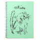 Un amusant carnet en spirale coloré de retour à l'école avec un dessin original d'un chaton adorable ! Arrière - plan vert vif.
