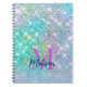 Carnet Joli monogramme faux pailleté licorne turquoise