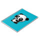 Une illustration mignonne et adorable d'un ours en panda noir et blanc assis et regardant heureux, amical et aimable. Arrière - plan bleu turquoise.