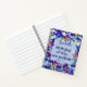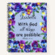 Nom personnalisable grand carnet en spirale avec le verset inspirant et encourageant de la bible "avec Dieu toutes les choses sont possibles." de Matthieu 19:26, avec aquarelle peinte bleu et violet fleurs pansy.