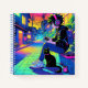 Joueur d'anime coloré assis avec son chat prêt pour le jeu de niveau suivant. Carnet de croquis en spirale.